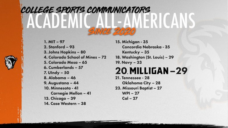 Milligan ranks No. 20 in collegiate athletics with 29 Academic All